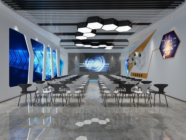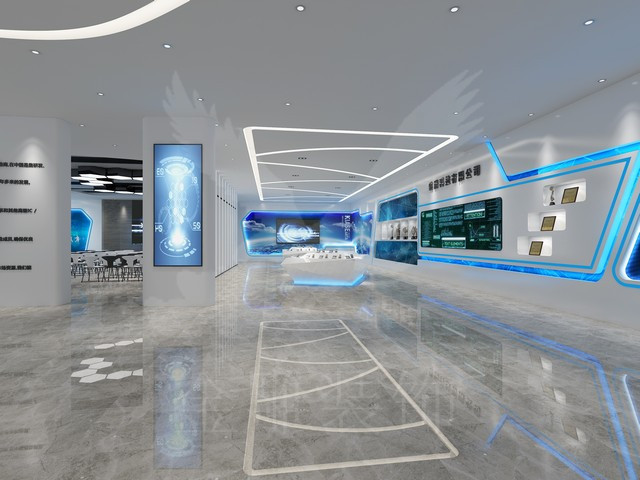 項目訴求:本案運用現代設計手法,結合業主公司的企業文化與產品,將科技與空間相結合,表現出整個設計方案的大氣沉穩及科技感;合理的動線規劃,使得參觀者輕松愉悅的參觀了解公司;展廳還設有休閑區,方便客戶及員工放松心情,營造一個輕松的氛圍,促進公司業務開發及推廣。同時本案選用高檔爵士白石材、伊朗灰石材、黑鏡、高檔黑色拉絲不銹鋼、軟膜天花、高檔油漆工藝,高清科技展廳寫真、高檔木質飾面板、新型鋁扣板天花、優質鋁塑板、高檔壁紙壁布、仿真綠植墻、生態木等裝飾材料,在保證環保的同時,凸顯出整個設計的時尚、前衛及科技感。