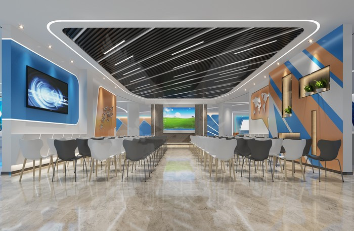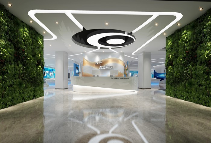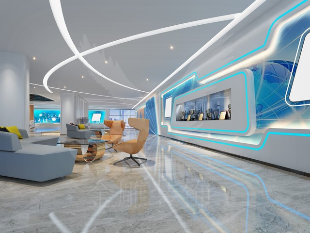 項(xiàng)目訴求: 本案運(yùn)用現(xiàn)代、中式、簡約歐式設(shè)計(jì)手法,融合企業(yè)文化與產(chǎn)品,科技元素與現(xiàn)代空間相結(jié)合,烘托出前沿科技公司的時(shí)尚與科技感;合理的動(dòng)線規(guī)劃,參觀者可以更輕松更快捷的了解公司;展廳規(guī)劃多功能區(qū),集產(chǎn)品發(fā)布和員工培訓(xùn)與一體,空間的合理利用,功能的合理區(qū)分,讓每一個(gè)區(qū)域的設(shè)計(jì)都合理順暢,給員工及客戶營造一個(gè)輕松舒適的環(huán)境。同時(shí)本案選用高檔爵士白石材、伊朗灰石材、黑鏡、高檔黑色拉絲不銹鋼、軟膜天花、高檔油漆工藝,高清科技展廳寫真、高檔木質(zhì)飾面板、新型鋁扣板天花、優(yōu)質(zhì)鋁塑板、高檔壁紙壁布、仿真綠植墻、生態(tài)木等裝飾材料,在保證環(huán)保的同時(shí),使得整個(gè)設(shè)計(jì)的時(shí)尚、前衛(wèi)及科技感表現(xiàn)的淋漓盡致。