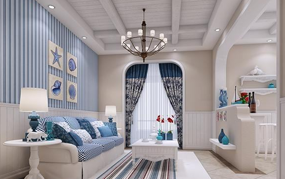 地中海裝修風格是現代家庭裝修的主流選擇,并得到廣泛推崇。其藍色延邊設計和拱形的獨特魅力,是大海和天邊的美好印證。沙發背景墻上豎條形的延伸了視覺,壁畫很別致,充滿了童趣,結合著沙發上五顏六色的靠枕,這絕對是一種藝術。蔚藍的大海、白色的沙灘,在每個人的心里,這都會是一幅完美的畫卷。