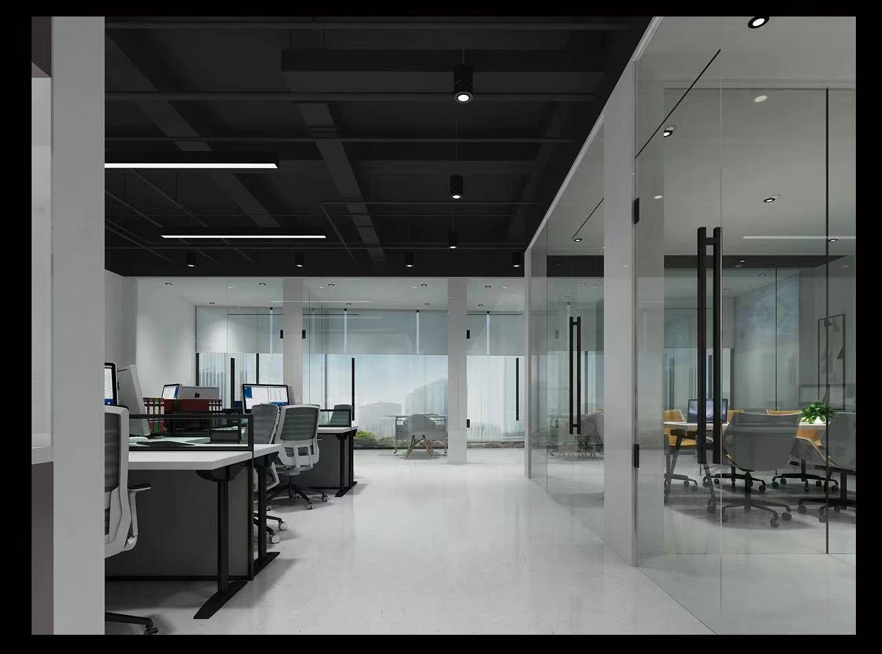 4、開放式辦公區域可以根據現場考慮是否有天花板。如果原來有天花板,可以選擇不動,也可以局部更換。如果原來的裸頂可以直接考慮噴涂,既省錢又能體現空間感。這種設計的優點是方便員工之間。