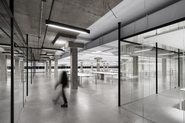 這個黑白灰的經(jīng)典工業(yè)風格就是 Accesolab位于墨西哥的辦公室設(shè)計了。灰色在這里的使用程度只能用一個詞來形用——鋪天蓋地。從天花板到地面,從燈具到桌椅板凳,無不是用各種明暗程度不一的灰色裝飾。但是設(shè)計師選用了帶有線條的地毯和直線延伸的吊頂,辦公室空間的工業(yè)氣息一下鋪面而來。